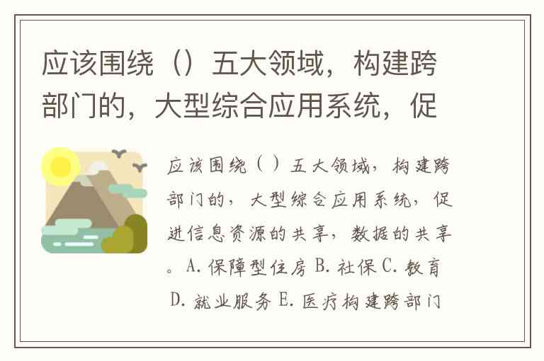 应该围绕()五大领域,构建跨部门的,大型综合应用系统,促进信息资源的共享,数据的共享。A.保障型住房 B.社保 C.教育 D.就业服务 E.医疗