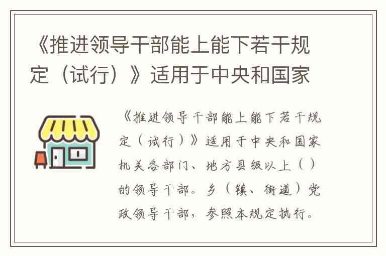 需要注意的是,该规定在2022年修订后已更名为《推进领导干部能上能下规定》,修订后的适用范围有所扩大,涵盖各级党的机关、人大机关、行政机关等多类机关中担任领导职务的干部,并将国有企业、事业单位领导人员纳入参照执行范围。但题目明确指向"试行"版本,故仍以最初界定的"党政机关"为准。这一变化也反映出干部管理体系从重点突破到系统覆盖的发展轨迹。