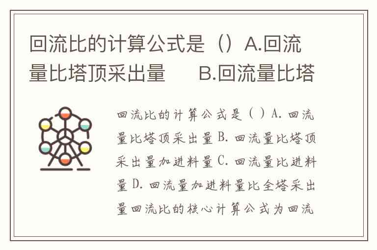 回流比的计算公式是()A.回流量比塔顶采出量 B.回流量比塔顶采出量加进料量 C.回流量比进料量 D.回流量加进料量比全塔采出量
