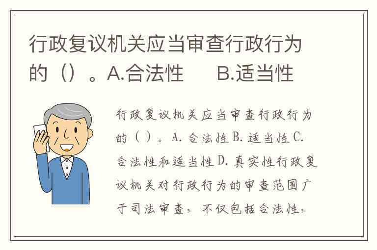 行政复议机关应当审查行政行为的()。A.合法性 B.适当性 C.合法性和适当性 D.真实性