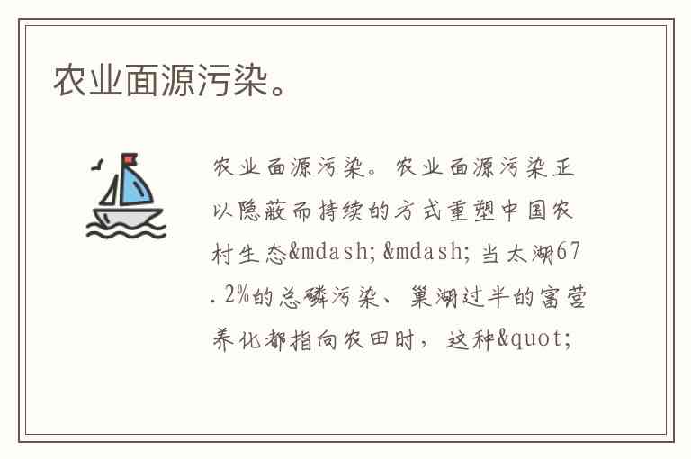 农业面源污染正以隐蔽而持续的方式重塑中国农村生态——当太湖67.2%的总磷污染、巢湖过半的富营养化都指向农田时,这种"看不见的污染"已成为水环境保护的最大挑战。与工业点源污染不同,它如毛细血管般渗透在农业生产全链条:过量施用的化肥中,超过50%的氮磷未被作物吸收,通过雨水冲刷汇入江河;塑料农膜在土壤中百年不腐,导致耕地质量下降,农作物减产最高达54.3%;而每公顷畜禽养殖产生的粪污若未经处理,相当于排放200公斤氮和50公斤磷的污染当量。这些分散在960万平方公里土地上的污染源,正通过"种植-养殖-加工"的链条,将化学物质送入土壤、水体和空气,最终威胁3亿农村人口的饮用水安全。