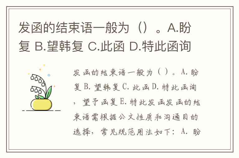 发函的结束语一般为()。A.盼复 B.望韩复 C.此函 D.特此函询,望予函复 E.特此发函