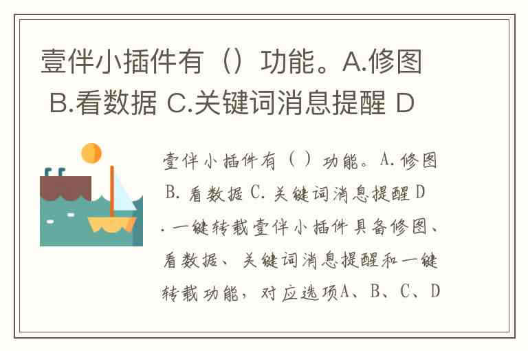 壹伴小插件有()功能。A.修图 B.看数据 C.关键词消息提醒 D.一键转载