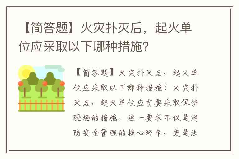 【简答题】火灾扑灭后,起火单位应采取以下哪种措施?