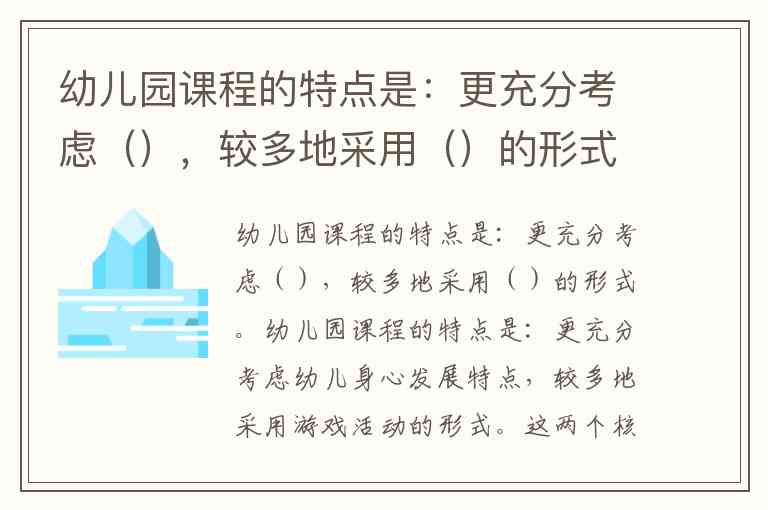 幼儿园课程的特点是:更充分考虑(),较多地采用()的形式。