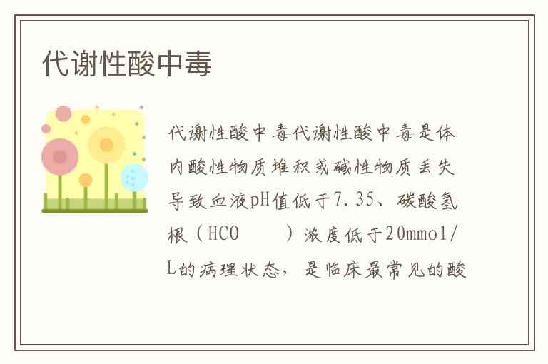 代谢性酸中毒是体内酸性物质堆积或碱性物质丢失导致血液pH值低于7.35、碳酸氢根(HCO₃⁻)浓度低于20mmol/L的病理状态,是临床最常见的酸碱平衡失调类型。这种内环境紊乱就像身体的"化学警报",可能由糖尿病酮症、休克缺氧、严重腹泻等多种原因触发,严重时会损害心脏、神经等多个系统功能。