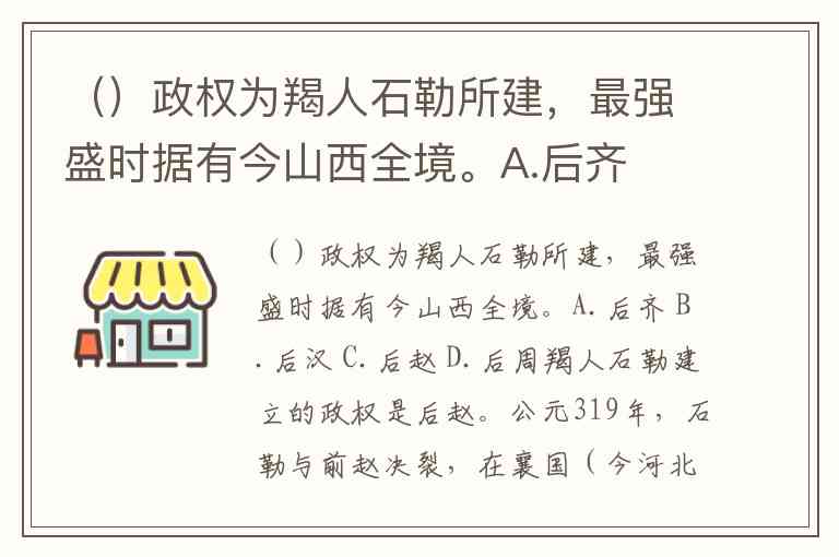 ()政权为羯人石勒所建,最强盛时据有今山西全境。A.后齐 B.后汉 C.后赵 D.后周