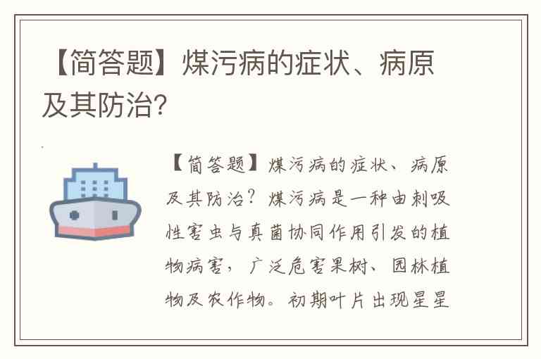 防治需采取标本兼治的系统策略。核心在于切断"害虫-蜜露-真菌"的食物链: