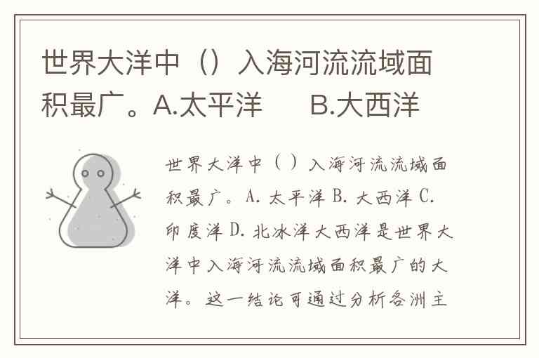 世界大洋中()入海河流流域面积最广。A.太平洋 B.大西洋 C.印度洋 D.北冰洋