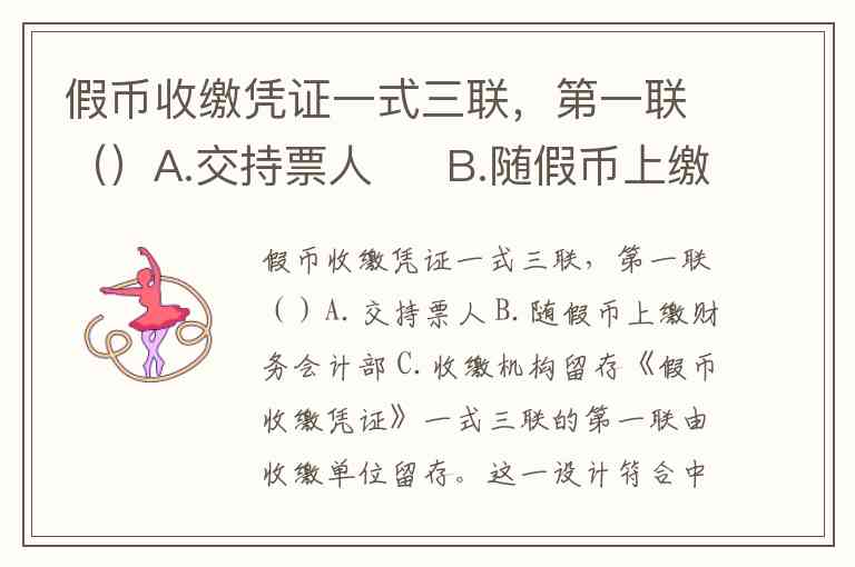 假币收缴凭证一式三联,第一联()A.交持票人 B.随假币上缴财务会计部 C.收缴机构留存