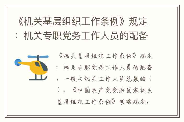 《中国共产党党和国家机关基层组织工作条例》明确规定,机关专职党务工作人员的配备一般占机关工作人员总数的1%至2%。这一比例设定旨在确保党建工作有稳定力量支撑,同时兼顾机关编制资源的合理配置。
