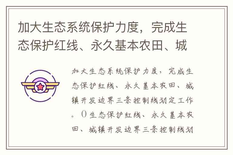 加大生态系统保护力度,完成生态保护红线、永久基本农田、城镇开发边界三条控制线划定工作。()