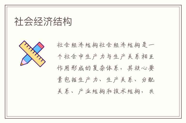 社会经济结构是一个社会中生产力与生产关系相互作用形成的复杂体系,其核心要素包括生产力、生产关系、分配关系、产业结构和技术结构,共同决定了经济运行模式和发展路径