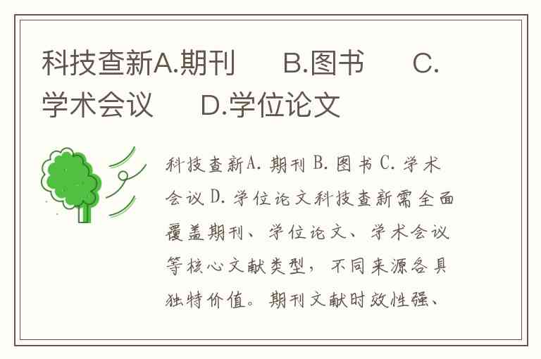 科技查新A.期刊 B.图书 C.学术会议 D.学位论文