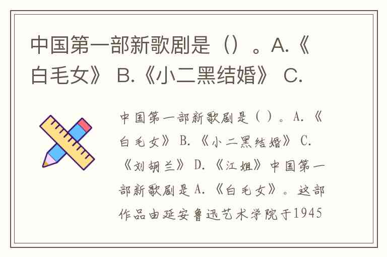 中国第一部新歌剧是()。A.《白毛女》 B.《小二黑结婚》 C.《刘胡兰》 D.《江姐》