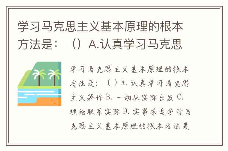 学习马克思主义基本原理的根本方法是:()A.认真学习马克思主义著作 B.一切从实际出发 C.理论联系实际 D.实事求是