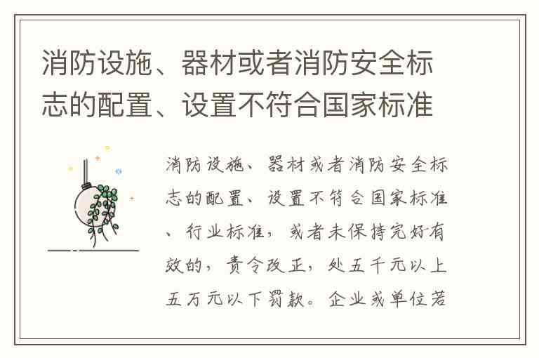消防设施、器材或者消防安全标志的配置、设置不符合国家标准、行业标准,或者未保持完好有效的,责令改正,处五千元以上五万元以下罚款。
