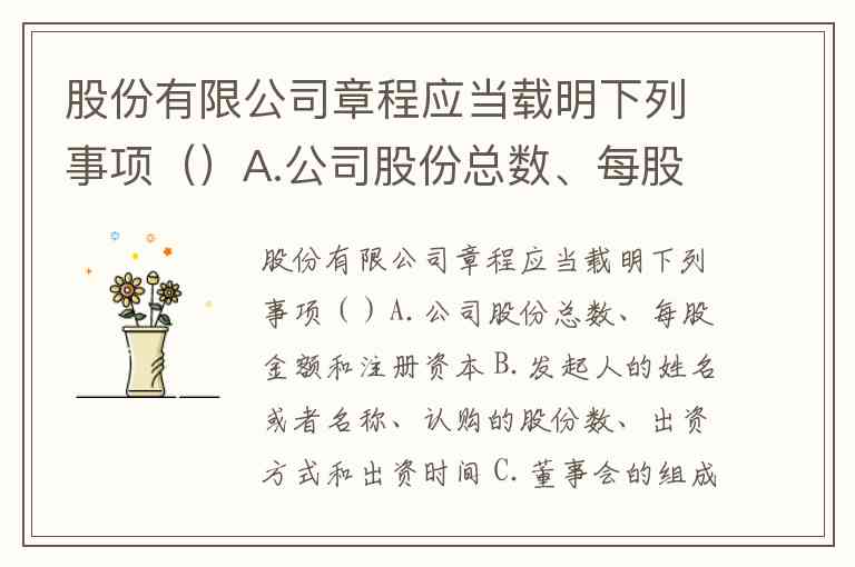 正确答案为A、B、C。这些事项共同构成了股份有限公司的基本框架,涵盖资本结构、发起人责任、治理机制等核心要素,而“全体股东名单”因股东流动性等原因未被纳入法定记载范围。公司章程的规范化记载,是公司合法设立和规范运行的前提。
