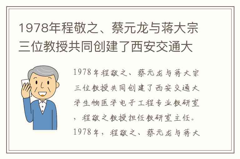 1978年程敬之、蔡元龙与蒋大宗三位教授共同创建了西安交通大学生物医学电子工程专业教研室,程敬之教授担任教研室主任。