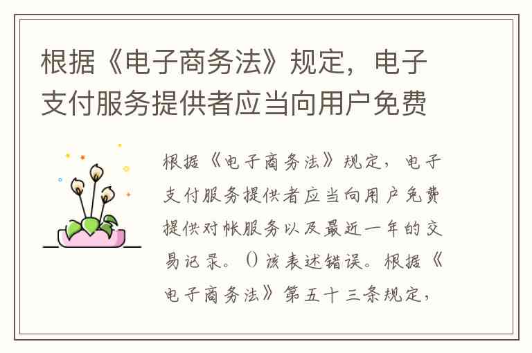 根据《电子商务法》规定,电子支付服务提供者应当向用户免费提供对帐服务以及最近一年的交易记录。()
