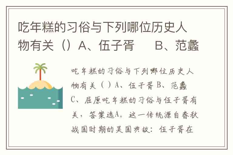 吃年糕的习俗与下列哪位历史人物有关()A、伍子胥 B、范蠡 C、屈原