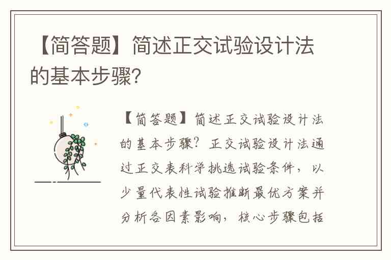 【简答题】简述正交试验设计法的基本步骤?