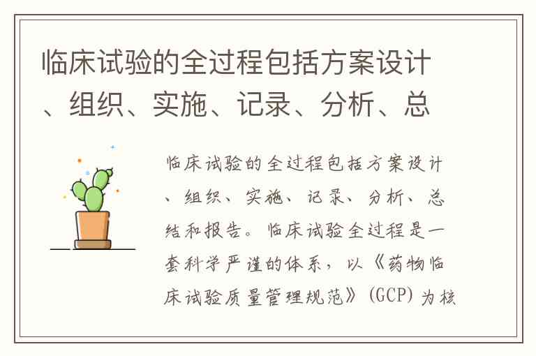 临床试验的全过程包括方案设计、组织、实施、记录、分析、总结和报告。