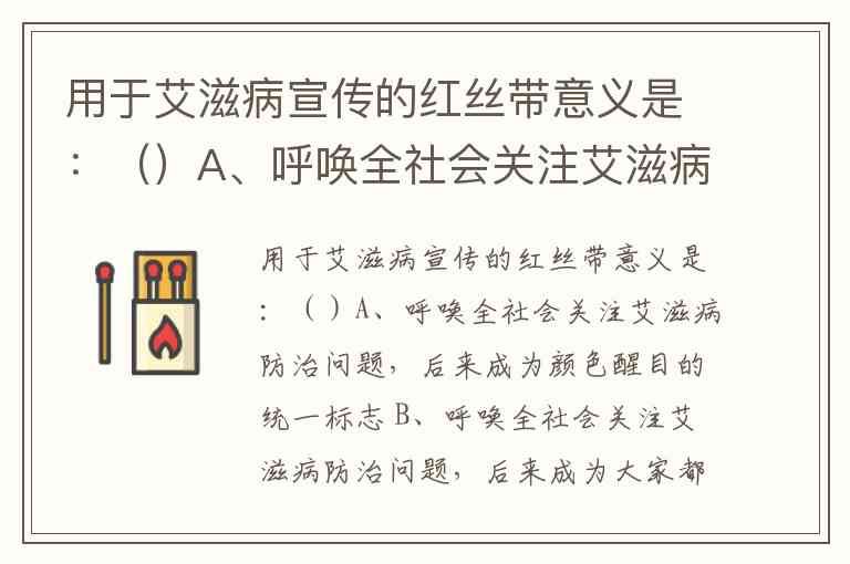 用于艾滋病宣传的红丝带意义是:()A、呼唤全社会关注艾滋病防治问题,后来成为颜色醒目的统一标志 B、呼唤全社会关注艾滋病防治问题,后来成为大家都戴、利于宣传的国际标志 C、呼唤全社会关注艾滋病防治问题,后来成为理解、关爱艾滋病病毒感染者及艾滋病病人的国际标志 D、呼唤全社会关注艾滋病防治问题,后来成为远离艾滋病的警示标志