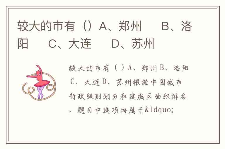 较大的市有()A、郑州 B、洛阳 C、大连 D、苏州