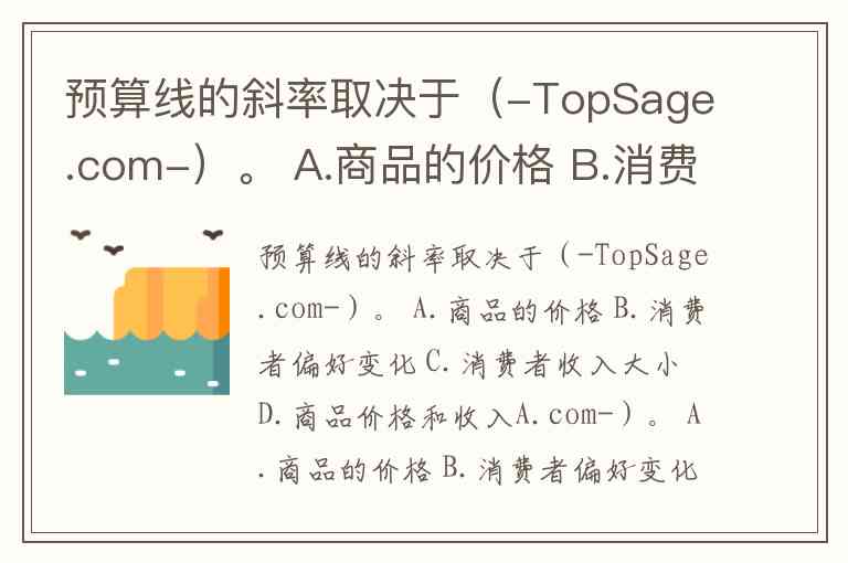 预算线的斜率取决于(-TopSage.com-)。 A.商品的价格 B.消费者偏好变化 C.消费者收入大小 D.商品价格和收入A.com-)。 A.商品的价格 B.消费者偏好变化 C.消费者收入大小 D.商品价格和收入