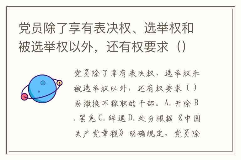 党员除了享有表决权、选举权和被选举权以外,还有权要求()或撤换不称职的干部。A.开除 B.罢免 C.辞退 D.处分