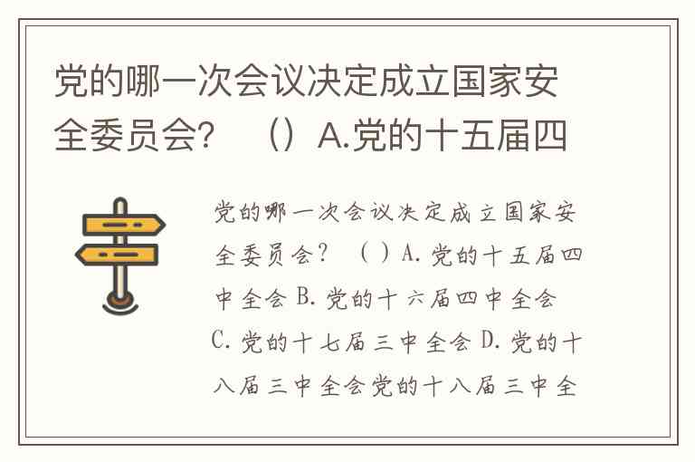 党的哪一次会议决定成立国家安全委员会? ()A.党的十五届四中全会 B.党的十六届四中全会 C.党的十七届三中全会 D.党的十八届三中全会