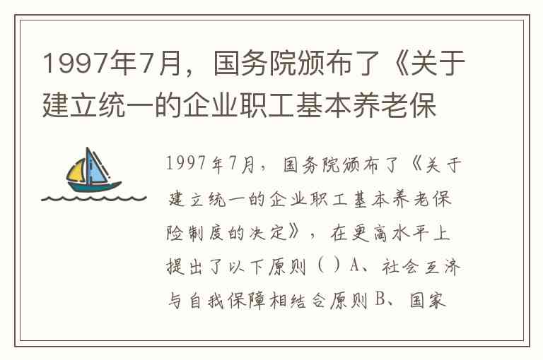 1997年7月颁布的《关于建立统一的企业职工基本养老保险制度的决定》明确提出了多项核心原则,奠定了我国现行养老保险制度的基础。根据文件原文及实施细则,正确答案为 A、C、D、E、F,具体解析如下: