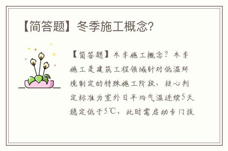 冬季施工是建筑工程领域针对低温环境制定的特殊施工阶段,核心判定标准为室外日平均气温连续5天稳定低于5℃,此时需启动专门技术措施以防止建筑材料冻害和施工质量问题。这一界定打破了单纯按季节划分的惯例——即使在11月至次年3月的传统冬季,若气温未持续低于5℃也无需冬期施工;反之,深秋或初春若出现持续低温,同样需按冬期标准执行。