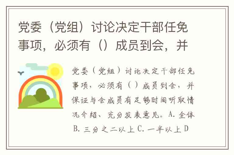党委(党组)讨论决定干部任免事项,必须有()成员到会,并保证与会成员有足够时间听取情况介绍、充分发表意见。A.全体 B.三分之二以上 C.一半以上 D.三分之一以上