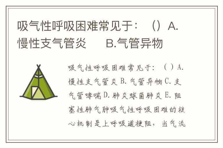 吸气性呼吸困难常见于:()A.慢性支气管炎 B.气管异物 C.支气管哮喘 D.肺炎球菌肺炎 E.阻塞性肺气肿