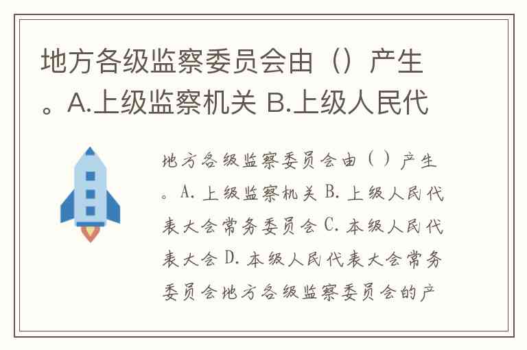 地方各级监察委员会由()产生。A.上级监察机关 B.上级人民代表大会常务委员会 C.本级人民代表大会 D.本级人民代表大会常务委员会