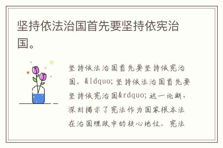坚持依法治国首先要坚持依宪治国。