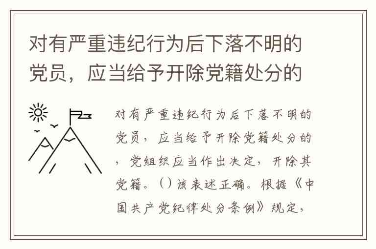 对有严重违纪行为后下落不明的党员,应当给予开除党籍处分的,党组织应当作出决定,开除其党籍。( )