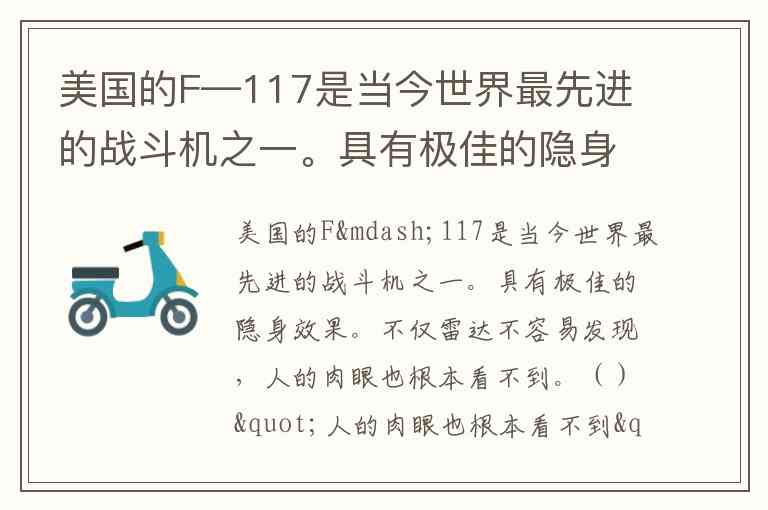 美国的F—117是当今世界最先进的战斗机之一。具有极佳的隐身效果。不仅雷达不容易发现,人的肉眼也根本看不到。()