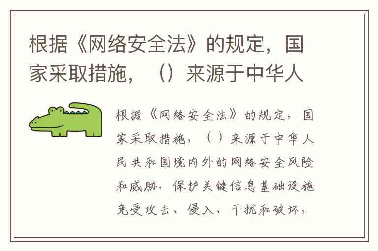根据《网络安全法》的规定,国家采取措施,()来源于中华人民共和国境内外的网络安全风险和威胁,保护关键信息基础设施免受攻击、侵入、干扰和破坏,依法惩治网络违法犯罪活动,维护网络空间安全和秩序。A.攻击 B.监测 C.处置 D.防御