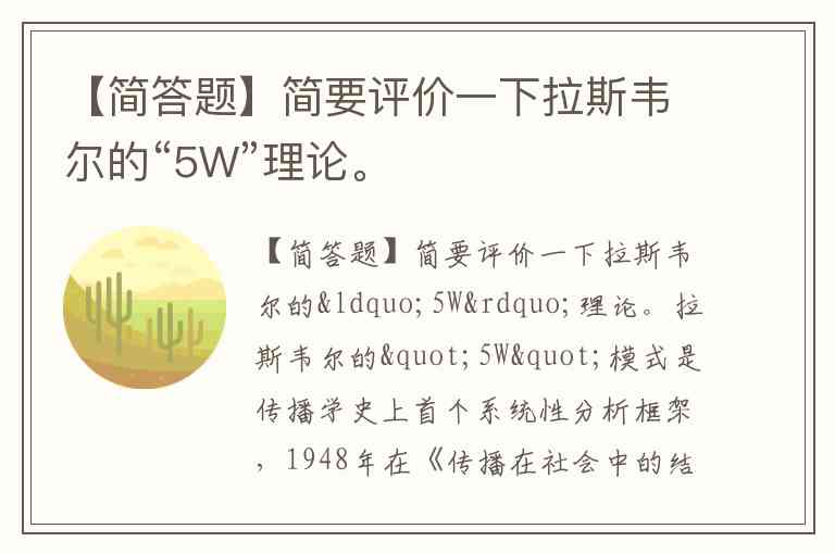 【简答题】简要评价一下拉斯韦尔的“5W”理论。