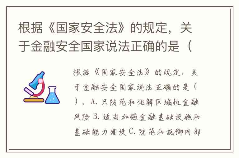 根据《国家安全法》的规定,关于金融安全国家说法正确的是()。A.只防范和化解区域性金融风险 B.适当加强金融基础设施和基础能力建设 C.防范和抵御内部金融风险的冲击 D.国家健全金融宏观审慎管理和金融风险防范、处置机制