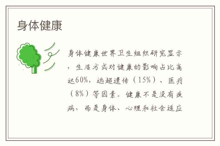 世界卫生组织研究显示,生活方式对健康的影响占比高达60%,远超遗传(15%)、医疗(8%)等因素。健康不是没有疾病,而是身体、心理和社会适应力的全面良好状态,这需要从饮食、运动、睡眠等日常习惯开始构建。