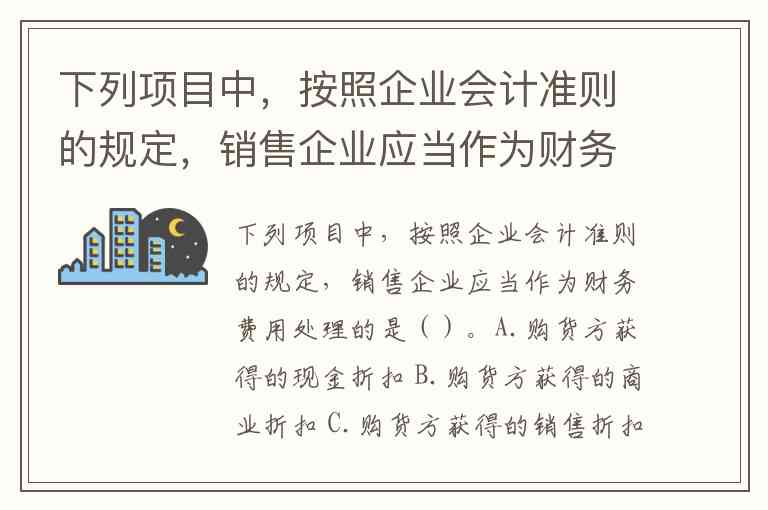 下列项目中,按照企业会计准则的规定,销售企业应当作为财务费用处理的是()。A.购货方获得的现金折扣 B.购货方获得的商业折扣 C.购货方获得的销售折扣 D.购货方放弃的现金折扣