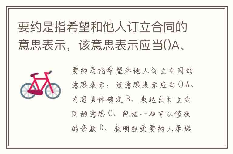 要约是指希望和他人订立合同的意思表示,该意思表示应当()A、内容具体确定 B、表达出订立合同的意思 C、包括一些可以修改的条款 D、表明经受要约人承诺,要约人即受该意思表示约束