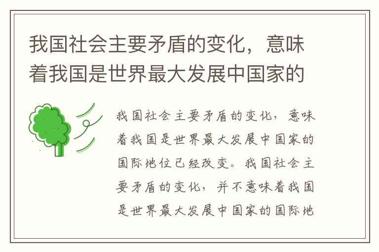 我国社会主要矛盾的变化,意味着我国是世界最大发展中国家的国际地位已经改变。