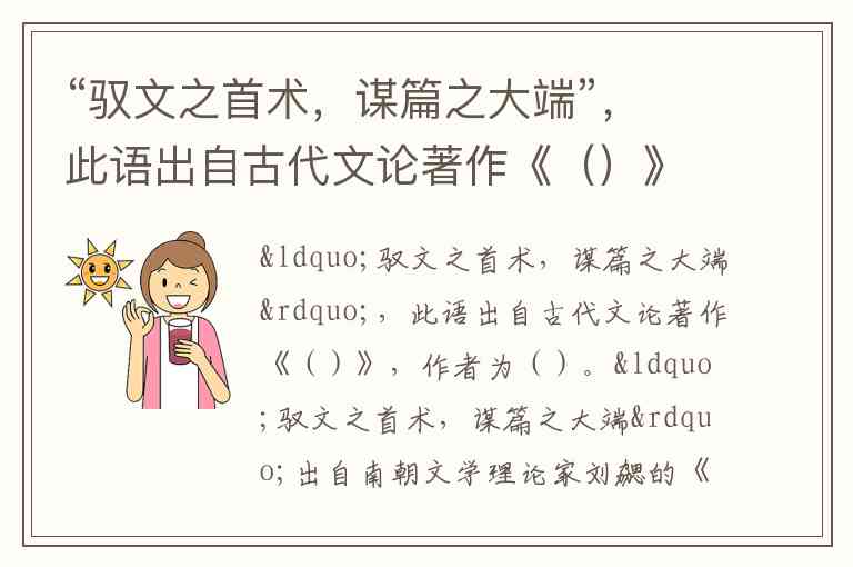 “驭文之首术,谋篇之大端”,此语出自古代文论著作《()》,作者为()。