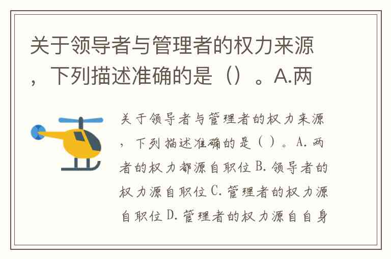 关于领导者与管理者的权力来源,下列描述准确的是()。A.两者的权力都源自职位 B.领导者的权力源自职位 C.管理者的权力源自职位 D.管理者的权力源自自身