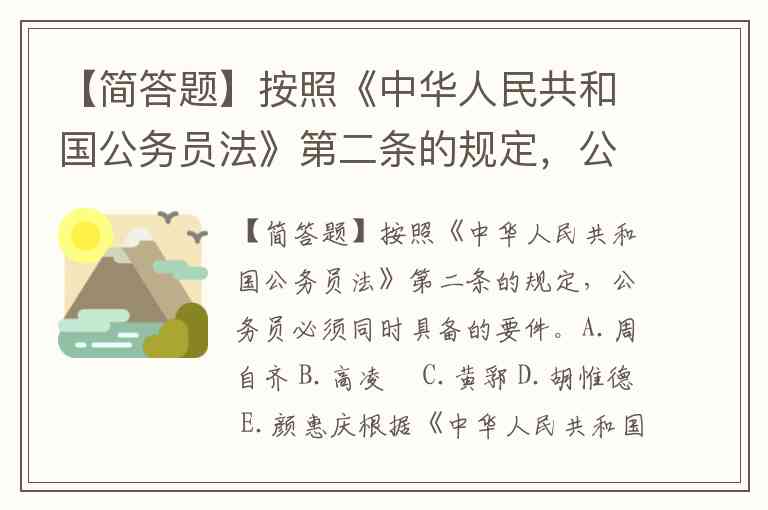 需要说明的是,您问题中列出的A至E选项(周自齐、高凌霨等)均为历史人物,并非公务员法规定的要件内容,可能是提问时的选项混淆。公务员任职条件的核心始终围绕国籍、年龄、政治立场、素质能力等法定要素,这一框架为国家机关选拔合格人才提供了明确的法律依据。